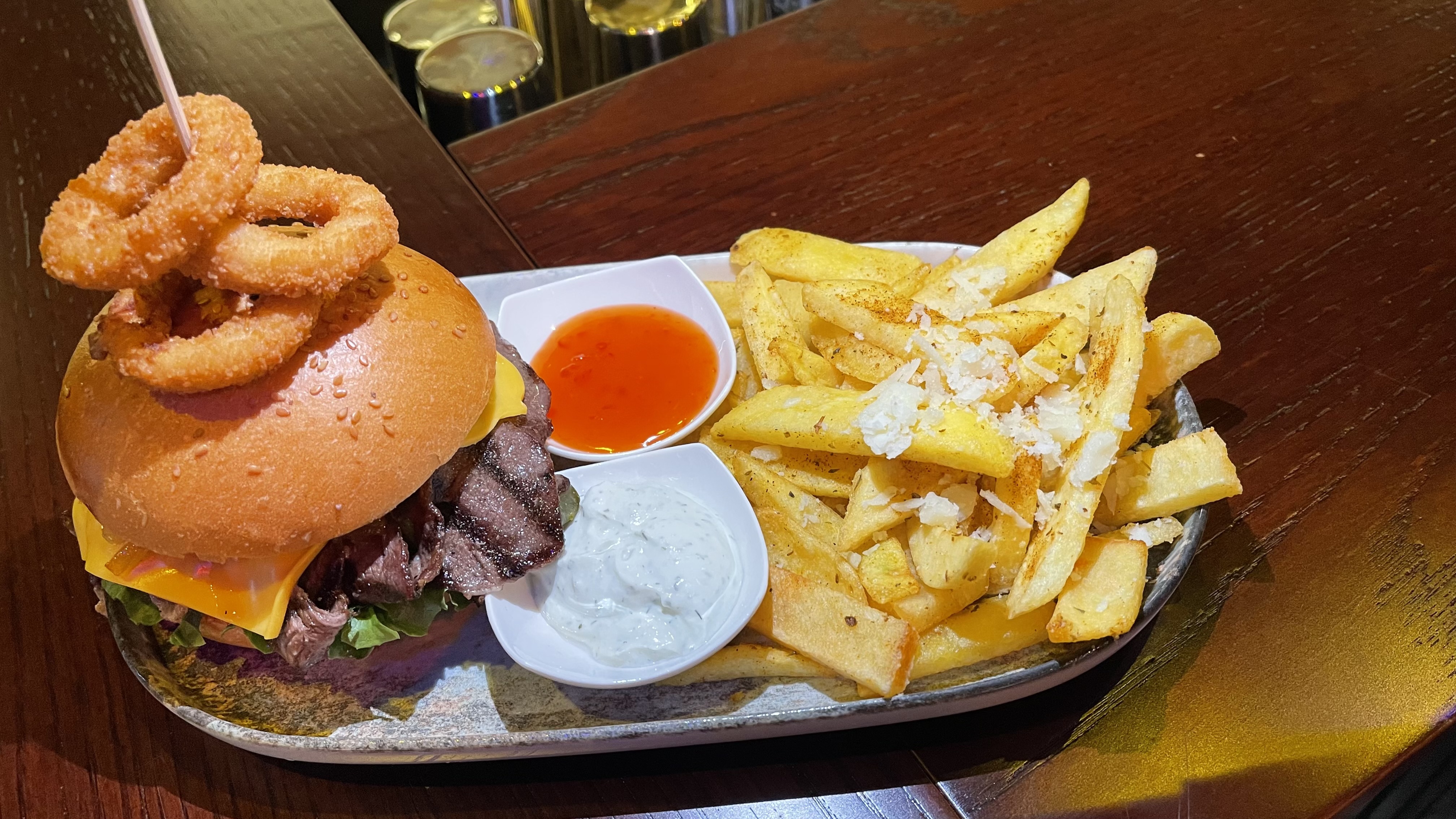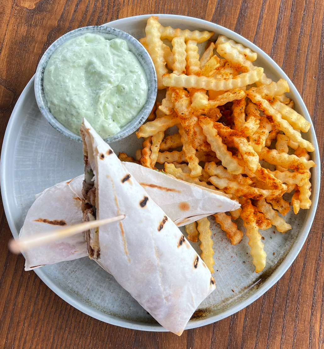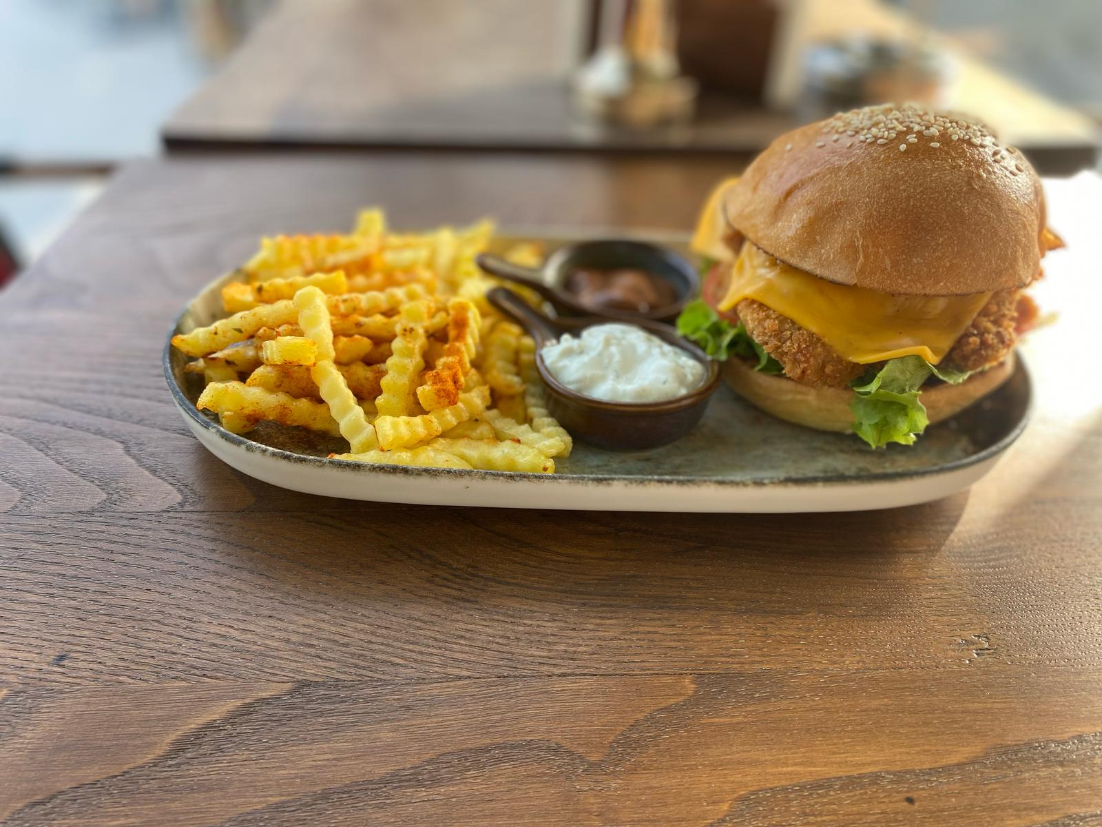 Parmesanli patates ve ozel soslar ile servis edilir.